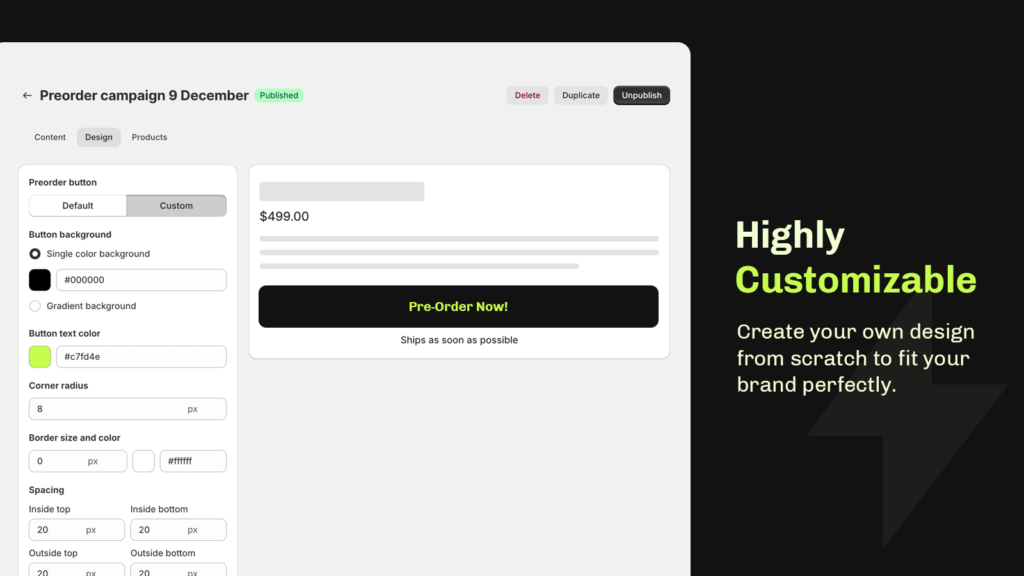 You can completely customize the Shopify preorder experience to match your store’s aesthetics. From changing button colors and styles to editing pop-up messages and labels, everything can be tailored to reflect your brand and message.